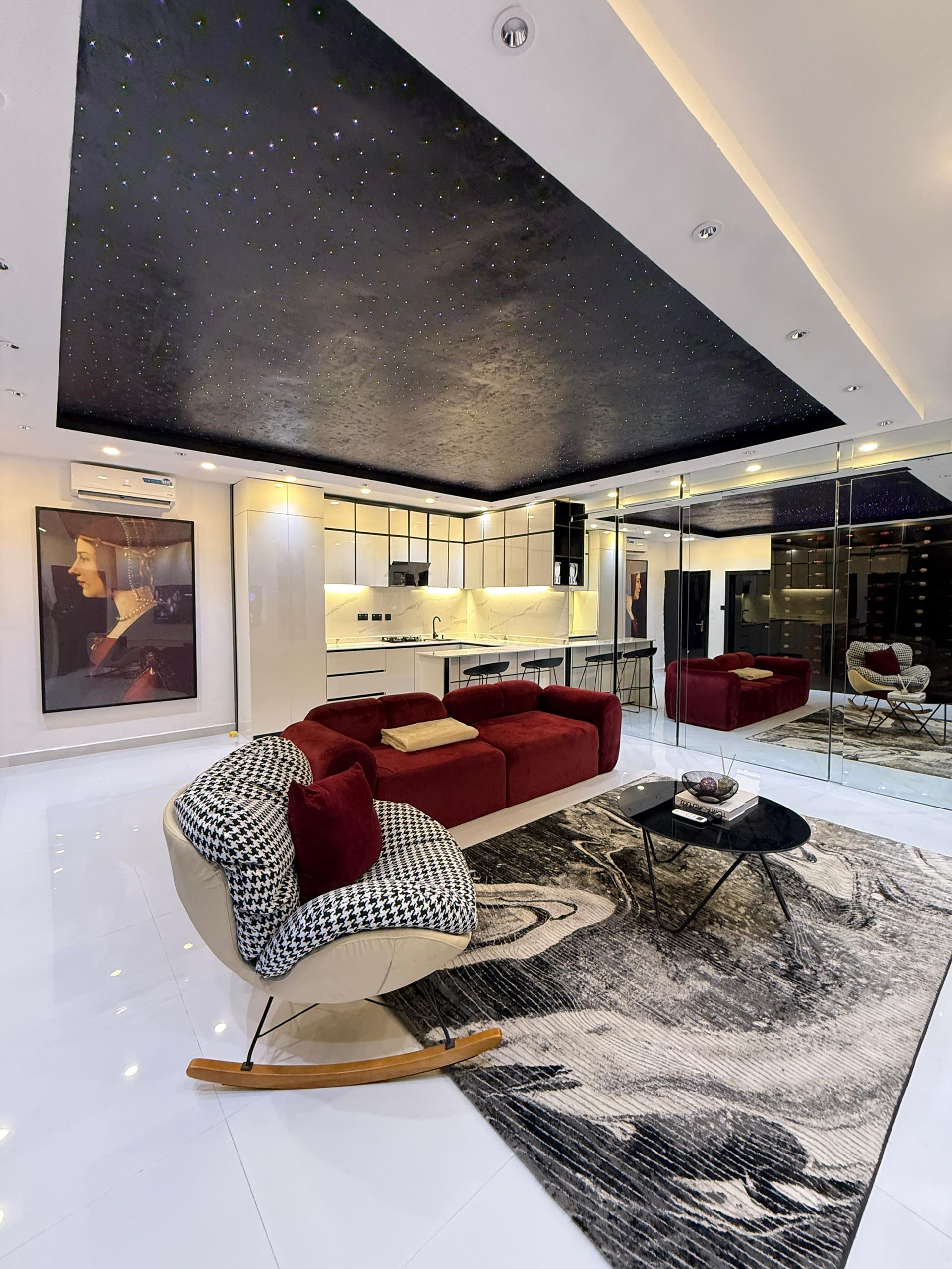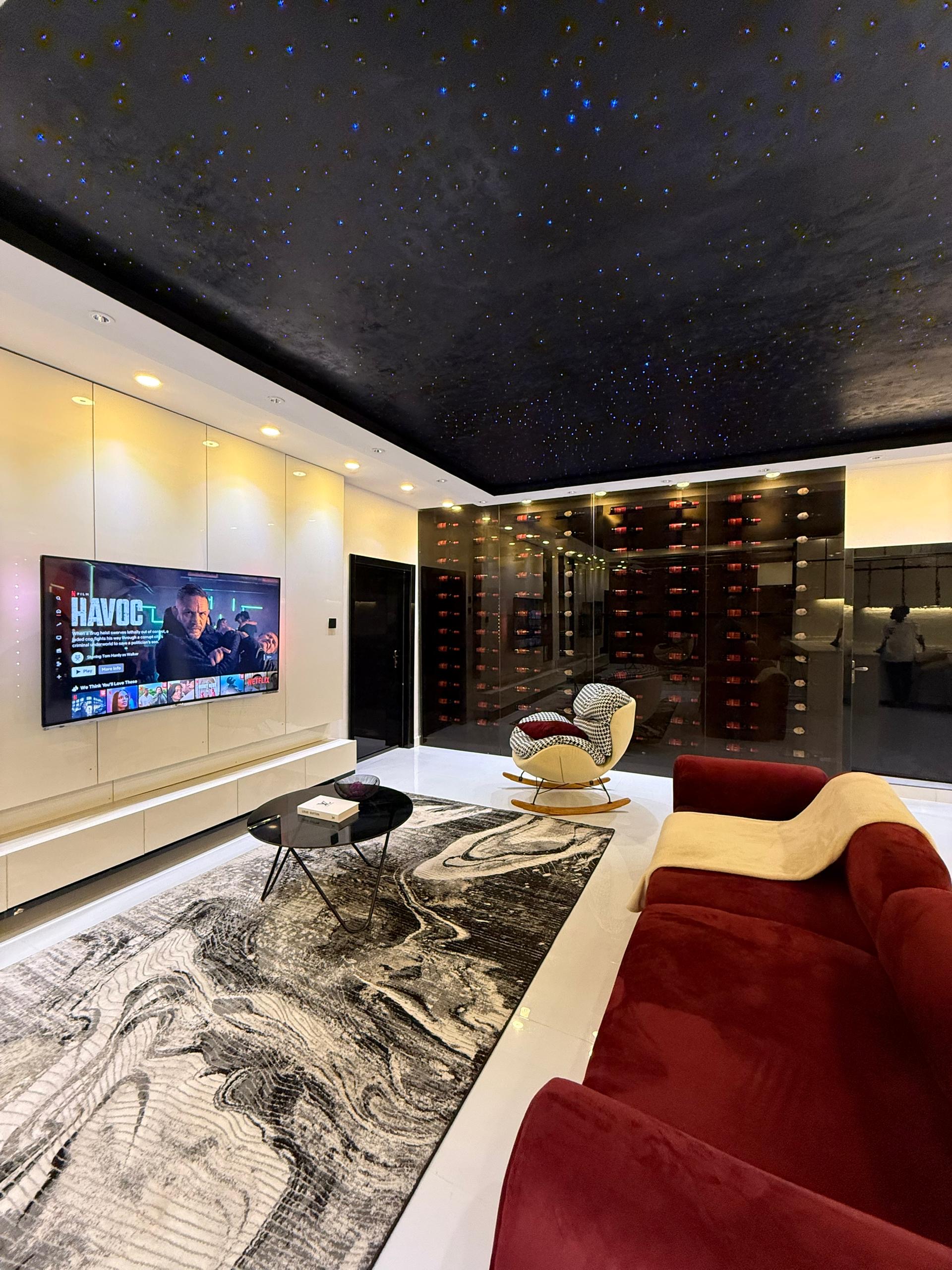 Aesthetically Pleasing 2 bedroom apartment with starlights, wine cellar, ps5 games, Swimming Pool, Bathtub and more