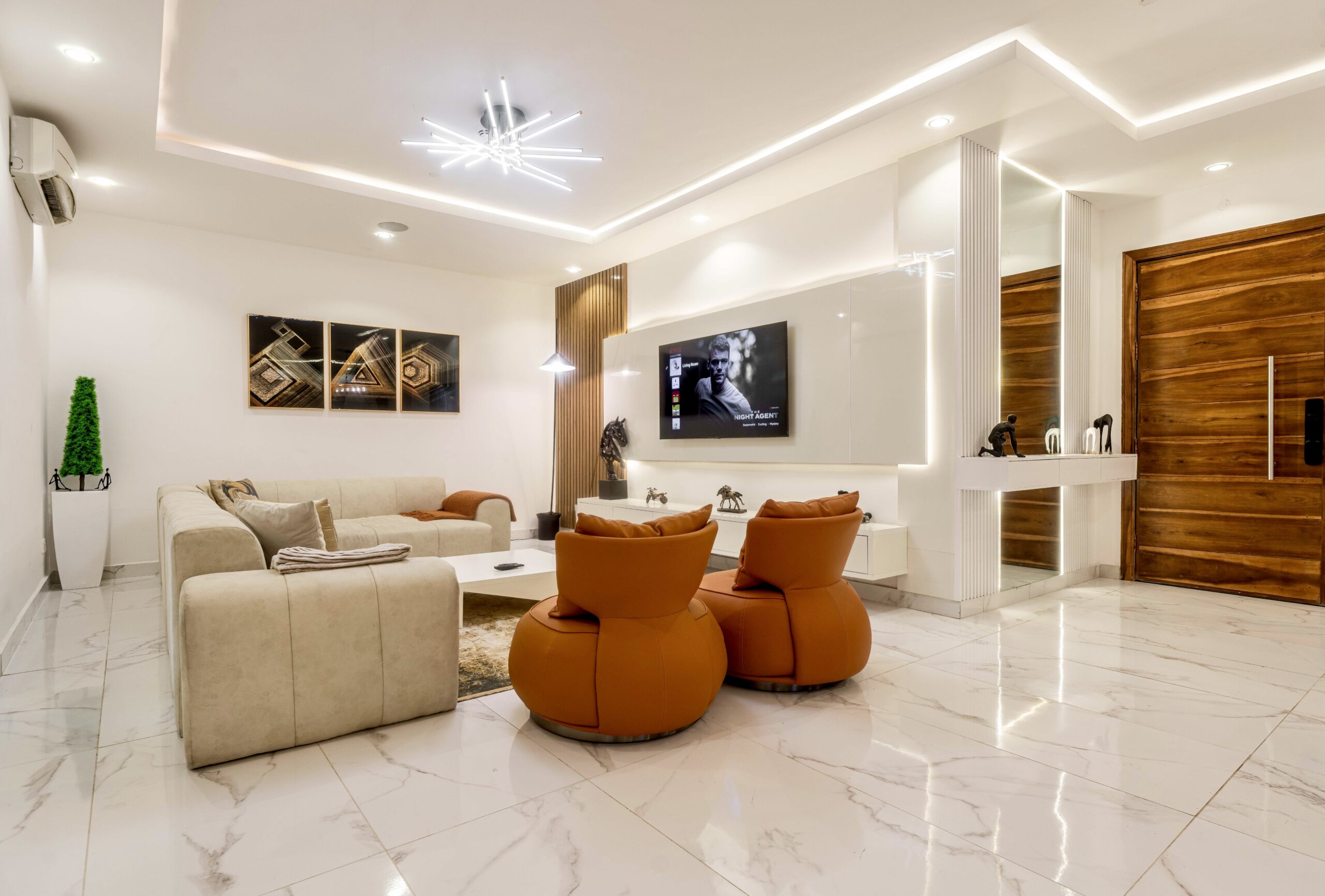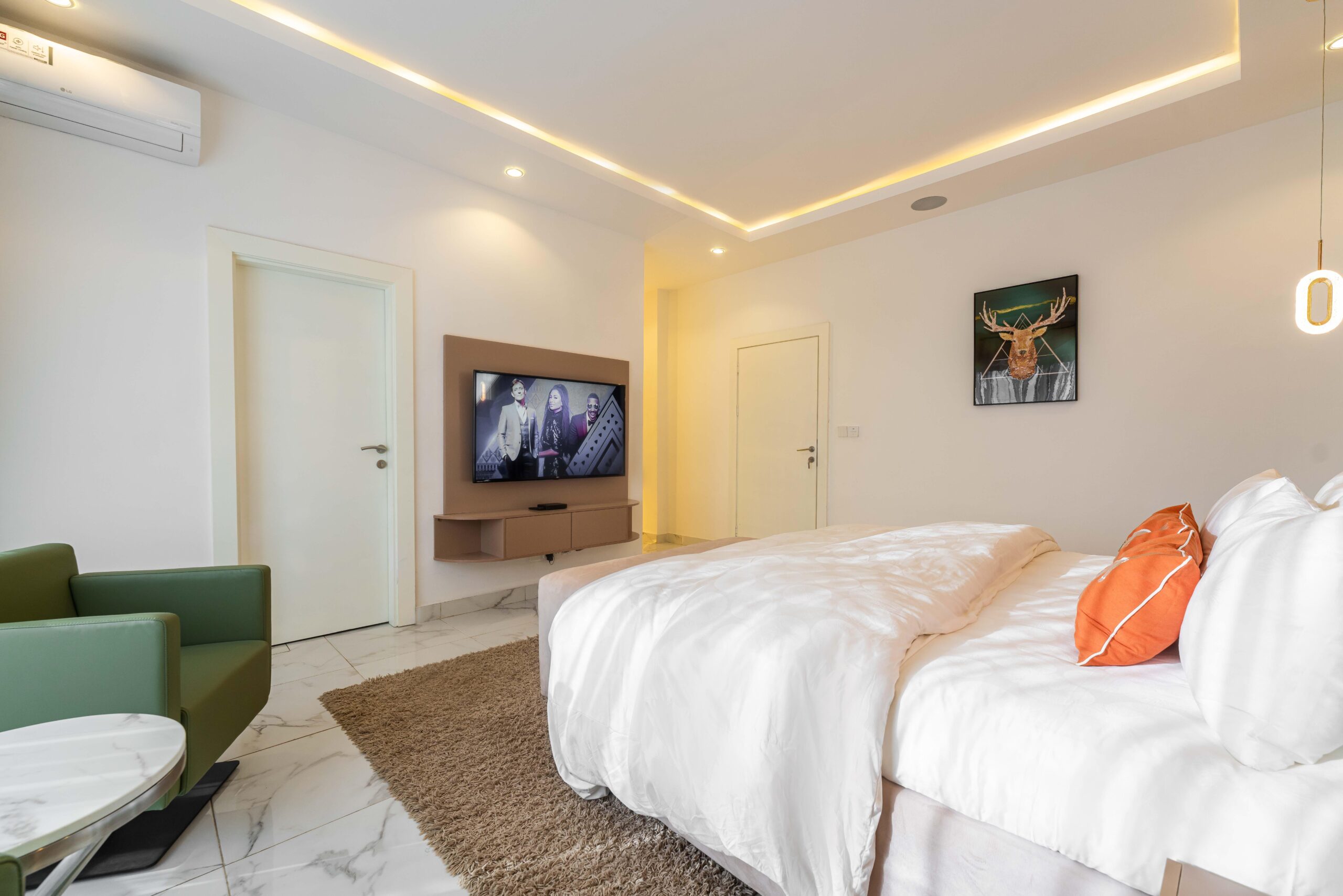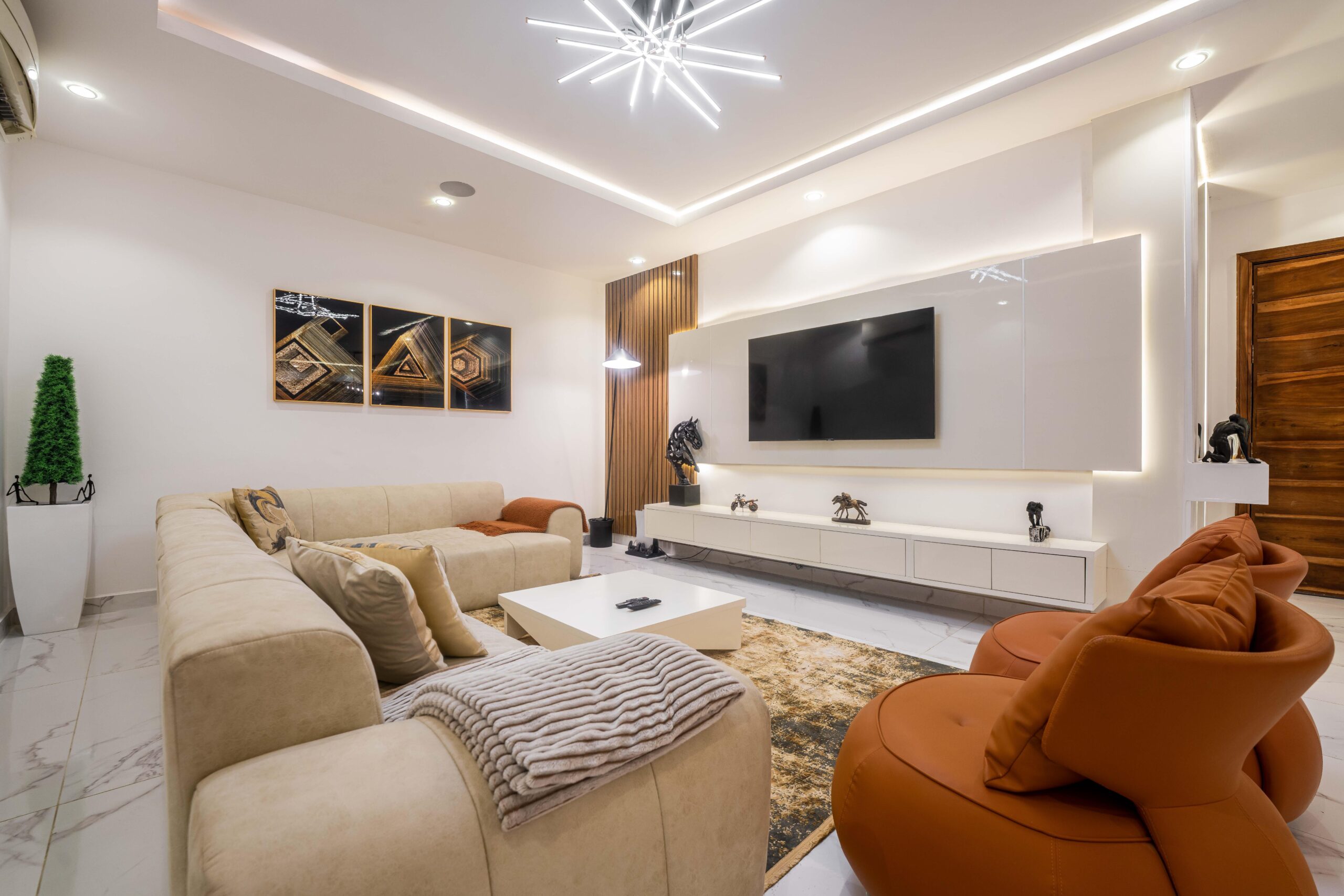 ▪️Dual Celing acrylic speakers in living rooms and Guest rooms (independent connection)